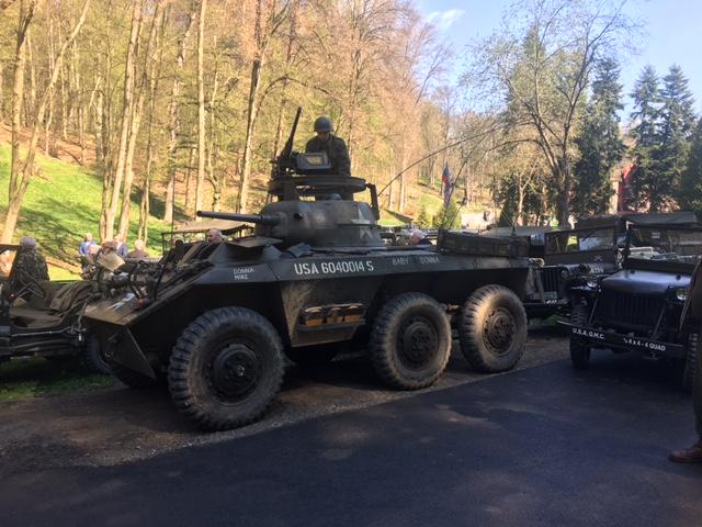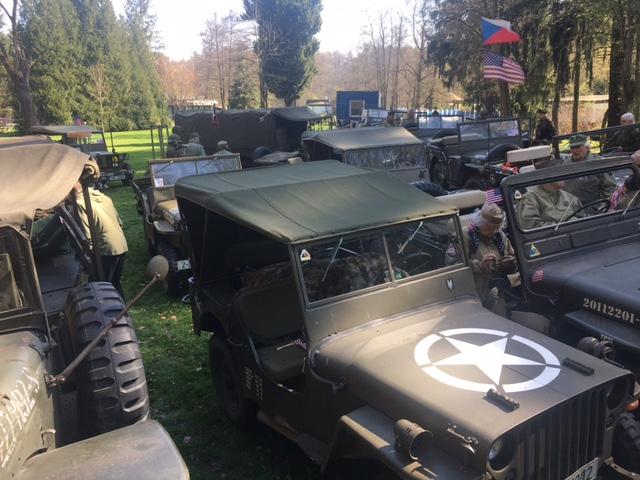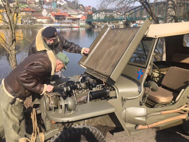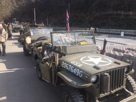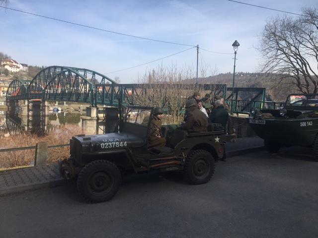 Remagenský most ještě nezalily první sluneční paprsky a už se na nejfotogeničtějších místech začala sjíždět první spojenecká vozidla. Fotka s ikonickým mostem v pozadí, to přeci stojí zato si trochu spánku odepřít! Postupně se pak objevila další zhruba třicítka vojenských vozidel. Jak už to na našich srazech bývá, co do počtu, druhoválečné americké Jeepy převažovaly. Téměř stovka starých dobrých kamarádů nejprve vzdala hold před pamětní deskou Mirko Trubkovi, který již druhým rokem prohání svůj Jeep po nebeských výšinách.